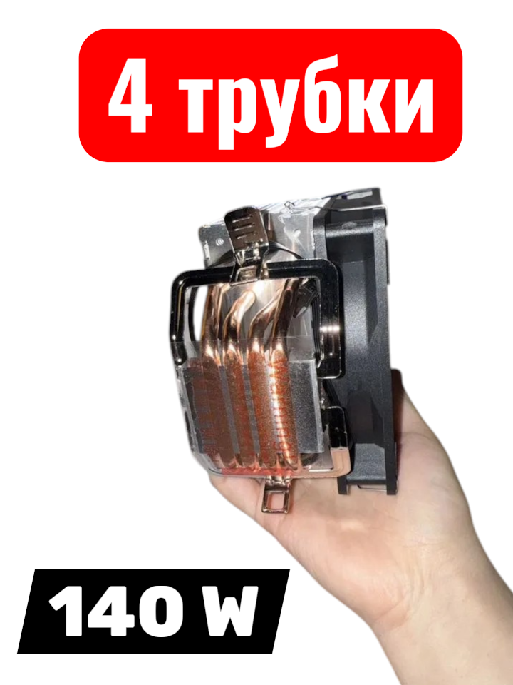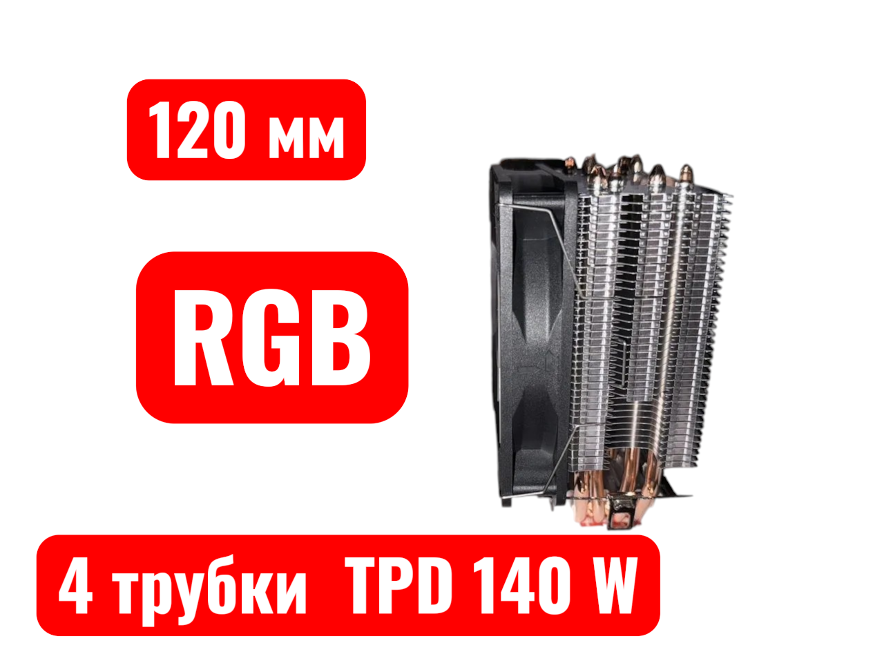 Кулер 4 медные трубки, 120 мм башня и вентилятор, 4 pin ,TDP 140w