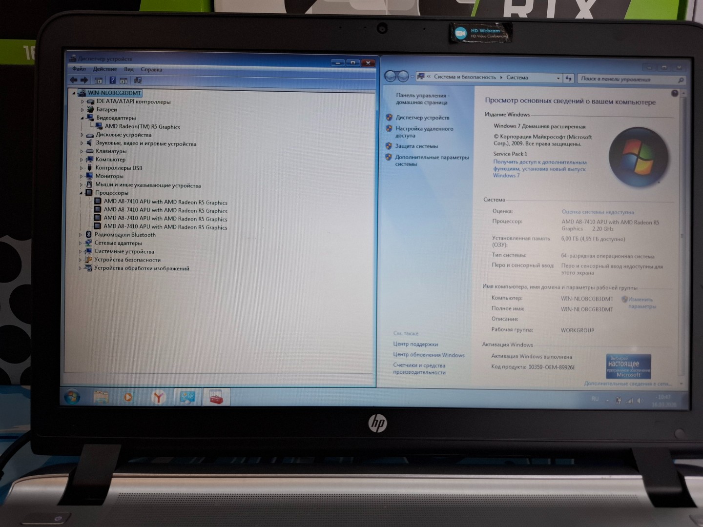 Ноутбук HP AMD A8-7410 4 ядра/ОЗУ 6 GB/HDD 250GB